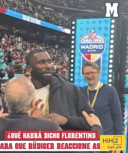هاي كورة – كشفت صحيفة ماركا أن فلورنتينو بيريز رئيس نادي ريال مدريد مازح مدافع فريقه أنتونيو روديغير قبل بداية مباراة NFL على ملعب سانتياغو بيرنابيو.