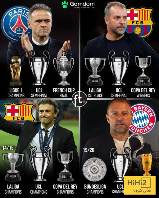 هانز فليك ولويس إنريكي قد يصبحان ثاني مدربين في تاريخ كرة القدم الذين يحققون “الثلاثية” في نفس الموسم للمرة الثانية.