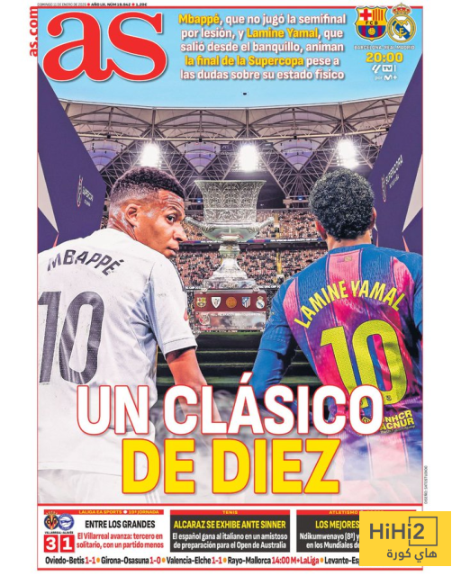هاي كورة- تصدر كلاسيكو السوبر الاسباني بين الغريمين برشلونة وريال مدريد غلاف صحيفة أس الاسبانية اليوم الأحد 11 يناير 2026 .