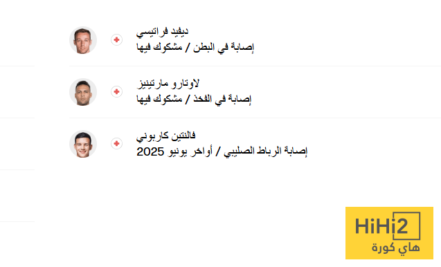 فيما يلي قائمة غيابات الإنتر عن مباراة كومو في ختام الدوري الإيطالي: