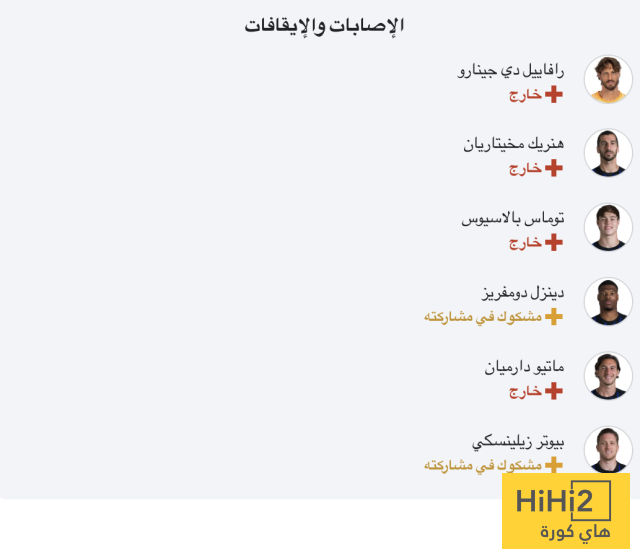 وجاءت قائمة غيابات الأفاعي عن الديربي لتشمل وجود ستة لاعبين ، لكن هناك شكوكًا بشأن مشاركة بعضهم في اللقاء .