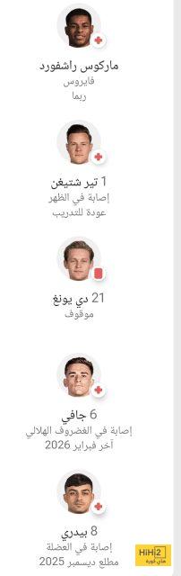 فيما يلي قائمة غيابات برشلونة قبل اللقاء حتى الآن :
