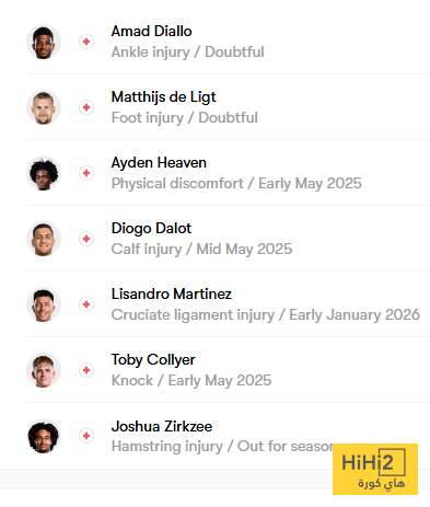 حيث سيفتقد مانشستر يونايتد للكثير من اللاعبين في تشكيلته الأساسية بسبب الإصابات، فقد شملت القائمة تواجد 7 لاعبين أبرزهم جوشوا زيركزي، وأليساندور مارتينيز، وماتياس دي ليخت.