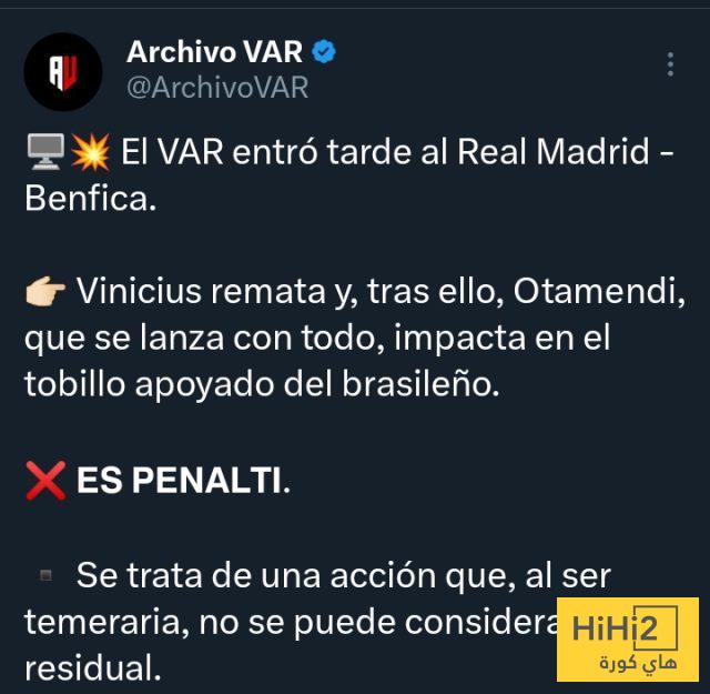 هاي كورة : وفقًا لمنصة أرشيف الفار ، حرم حكم مواجهة ريال مدريد وبنفيكا اصحاب الأرض من ركلة جزاء واضحة بعد تدخل عنيف على فينيسيوس جونيور .