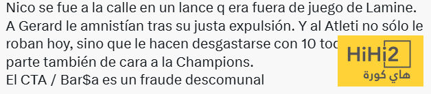 أتلتيكو مدريد لم يتعرض فقط للظلم ، بل أجبر أيضا على استنزاف طاقته باللعب بعشرة لاعبين طوال الشوط الثاني ، وذلك قبل مواجهاته في دوري الأبطال .