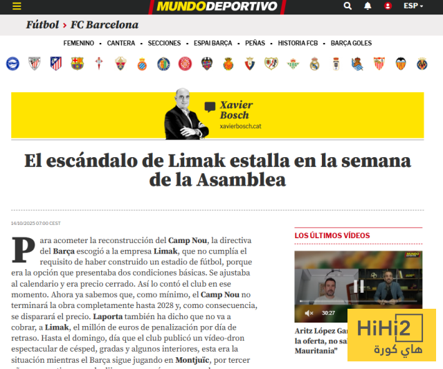 ما كشفت عنه إذاعة “كادينا سير” يعيد فتح الملف من جديد، إذ تبين أن ليماك قُيّمت كأسوأ شركة مشاركة في المناقصة من قبل لجنة خبراء برشلونة، وأنها قدمت عرضها بعد الموعد النهائي، بل فشلت في استيفاء بعض المتطلبات، ومع ذلك تم تغيير القواعد لتُمنح الشركة العقد الأكبر في تاريخ النادي، وهو مشروع Espai Barça.