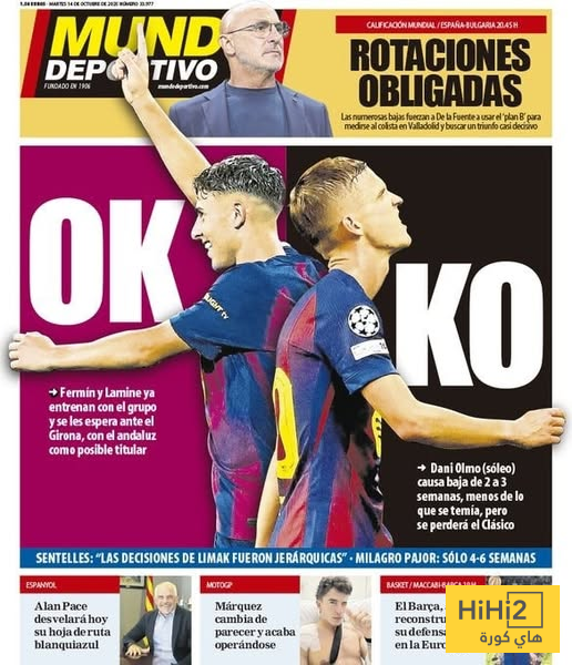 “داني اولمو (اصابة في عضلة الساق) ، سيغيب من 2 الى 3 اسابيع – مدة اقل مما كان متوقعا ، لكنه سيغيب عن الكلاسيكو امام ريال مدريد”.