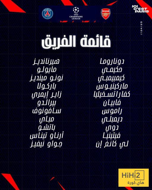 هاي كورة – أعلن لويس إنريكي، مدرب باريس سان جيرمان، عن قائمة فريقه الرسمية لمواجهة أرسنال، غدًا الثلاثاء، على ملعب الإمارات، في ذهاب نصف نهائي بطولة دوري أبطال أوروبا.