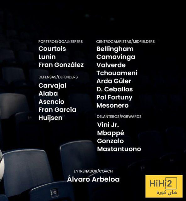 هاي كورة : أعلن المدير الفني لنادي ريال مدريد ، ألفارو أربيلوا ، عن قائمة الفريق المستدعاه لمواجهة موناكو في دوري أبطال أوروبا مساء غدا الثلاثاء .