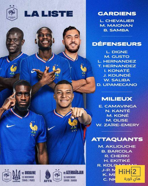 هاي كورة – كشف المدرب ديديه ديشامب عن قائمته الرسمية لمنتخب فرنسا ، والتي ستخوض تصفيات كأس العالم 2026 خلال شهر نوفمبر الجاري .
