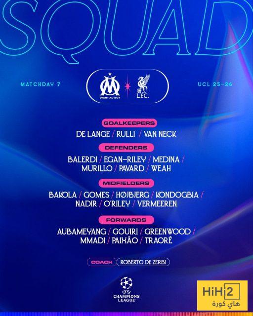 إليكم قائمة مارسيليا الرسمية للقاء ليفربول على النحو التالي: