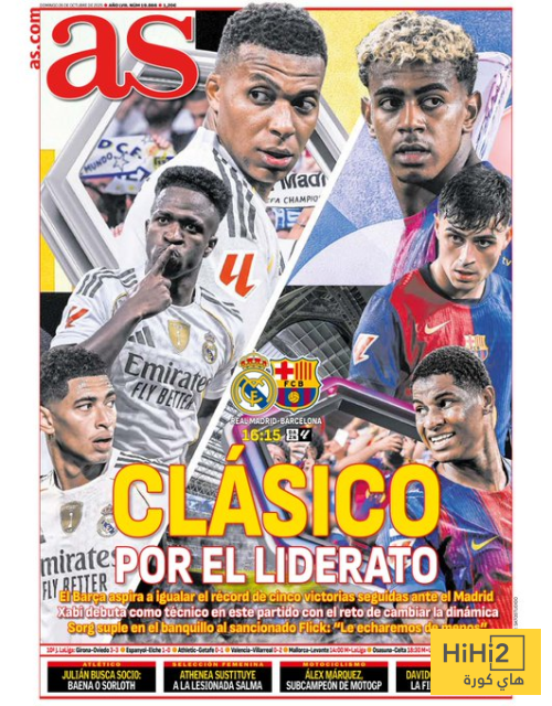 هاي كورة- عنونت صحيفة أس الاسبانية على غلافها اليوم الاحد 26 اكتوبر 2025 قائلة :