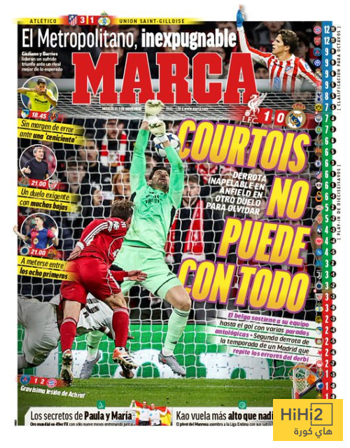 هاي كورة- هزيمة ريال مدريد ضد ليفربول (0-1) العنوان الرئيسي لغلاف صحيفة ماركا الاسبانية اليوم 5 نوفمبر 2025 .