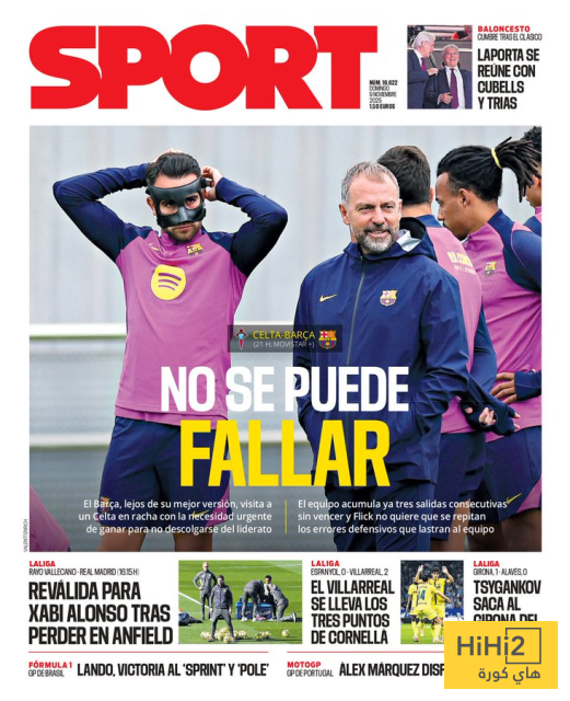 هاي كورة- الصفحة الأولى من صحيفة سبورت الكتالونية سلطت الضوء على المواجهة الصعبة لبرشلونة ضد سيلتا فيغو اليوم الاحد ، في الجولة الـ 12 من منافسات الليغا .