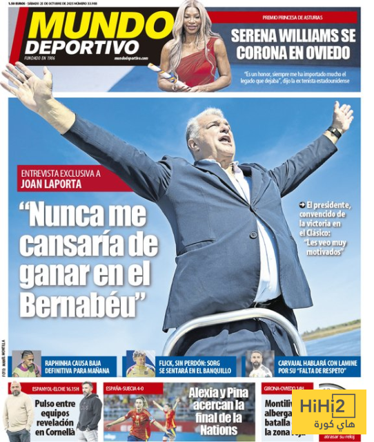 هاي كورة- تصدرت تصريحات خوان لابورتا ، رئيس برشلونة، عن الكلاسيكو ضد ريال مدريد غلاف صحيفة موندو ديبورتيفو الاسبانية اليوم السبت 25 اكتوبر 2025.