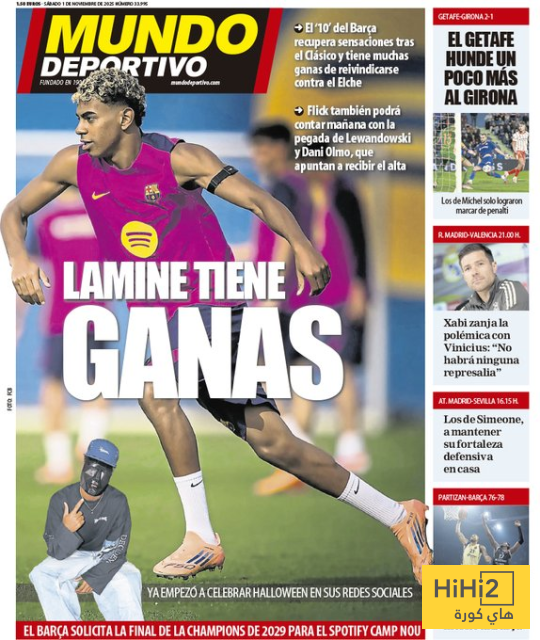 هاي كورة- تصدر لامين يامال نجم برشلونة غلاف صحيفة موندو ديبورتيفو الاسبانية اليوم السبت 1 نوفمبر 2025 .