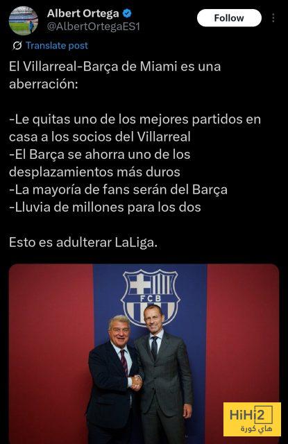 ” إقامة مباراة فياريال وبرشلونة في ميامي هي تشويه: