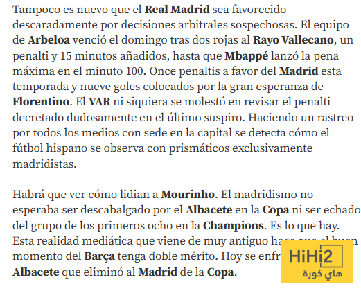 سنرى كيف سيتعاملون مع مورينيو ، لم يتوقع مشجعو ريال مدريد الخروج من كأس الملك على يد ألباسيتي أو الخروج من المراكز الثمانية الأولى في دوري أبطال أوروبا . هكذا هي الأمور . هذه الحقيقة الإعلامية الراسخة تجعل أداء برشلونة الحالي أكثر إثارة للإعجاب، اليوم يواجهون ألباسيتي ، الفريق الذي أقصى الريال من كأس الملك .