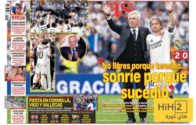 هاي كورة _ قامت صحيفة آس المدريدية بتسليط الضوء في عددها الصادر اليوم على وداعية كارلو أنشيلوتي ولوكا مودريتش.