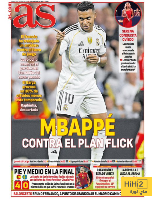 هاي كورة- ظهر كيليان مبابي ، نجم ريال مدريد، على غلاف صحيفة أس الاسبانية ، اليوم السبت 25 اكتوبر 2025.