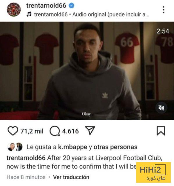 وكان أرنولد قد أعلن عبر حسابه الرسمي على وسائل التواصل الاجتماعي رحيله عن ليفربول، لينهي بذلك فصلاً طويلاً من مسيرته داخل أسوار “أنفيلد”، وسارع مبابي إلى إبداء إعجابه بمنشور أرنولد على “إنستغرام”، في إشارة واضحة لاحتفائه بانضمام محتمل لزميل جديد إلى ريال مدريد.
