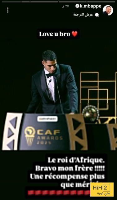 هاي كورة- هنأ كيليان مبابي نجم ريال مدريد زميله السابق في باريس سان جيرمان اشرف حكيمي ، بعد فوزه بجائزة افضل لاعب افريقي لعام 2025 .