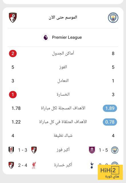 فيما يلي مقارنة بين أرقام السيتي وبورنموث في الدوري هذا الموسم :