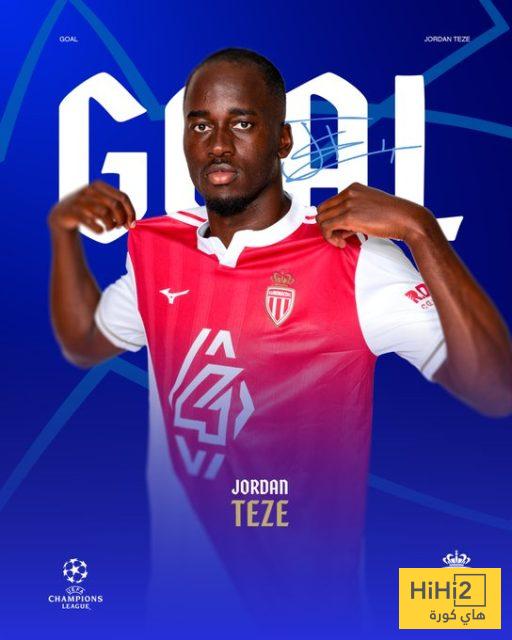 سجل جوردان تيزي هدف التعال لموناكو في شباك السيتي مع الدقيقة 18، لتصبح النتيجة 1-1.