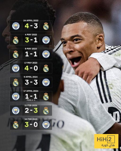 مواجهة مانشستر سيتي ضد ريال مدريد منذ موسم 2021-2022 هي الأكثر تكرارا في دوري ابطال اوروبا (8 مرات )