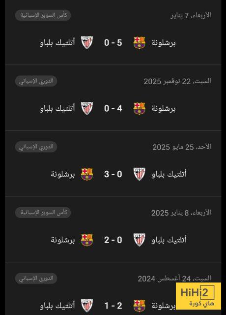 إليكم نتائج أخر 5 مباريات جمعت برشلونة و اتلتيك بلباو :