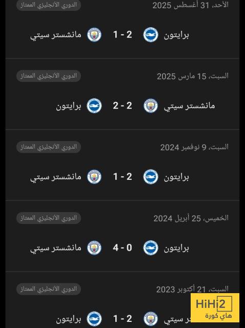 إليكم نتائج أخر 5 مباريات جمعت مانشستر سيتي و برايتون :
