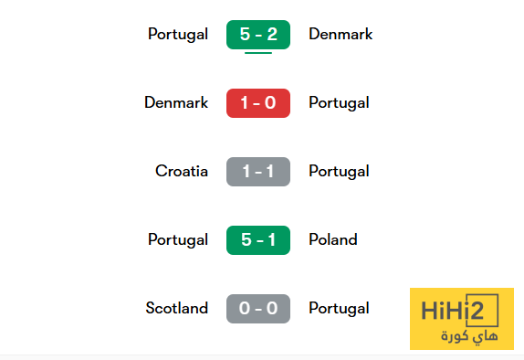 فيما يلي نتائج أخر 5 مباريات للمنتخب البرتغالي: