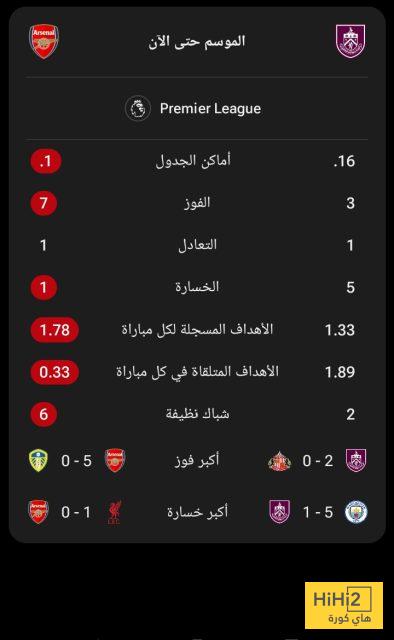 إليكم نتائج أرسنال و بيرنلي هذا الموسم في الدوري الانجليزي الممتاز :