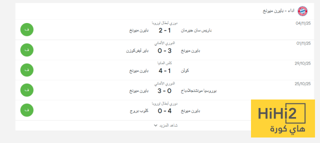 فيما يلي نتائج البايرن في أخر 5 مباريات:
