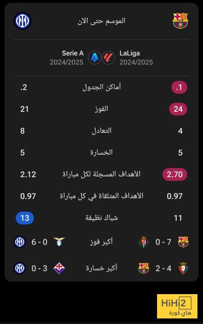 إليكم نتائج برشلونة و انتر ميلان هذا الموسم في الدوري الاسباني و الإيطالي قبل لقاء الفريقين في دوري أبطال أوروبا: