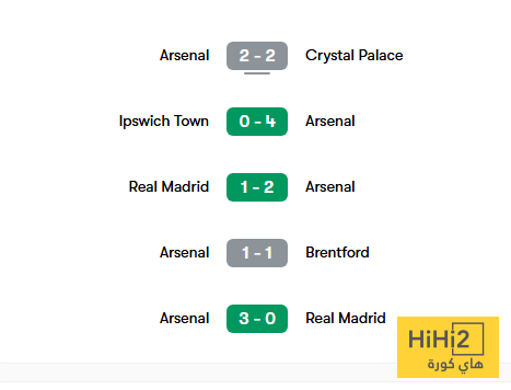 فيما يلي نتائج أخر 5 مباريات للجانرز قبل ملاقاة باريس: