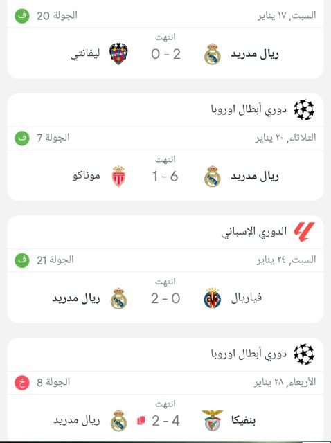 وجاءت نتائج ريال مدريد كالتالي :