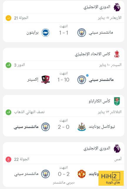 وجاءت نتائج مانشستر سيتي السابقة كالتالي :