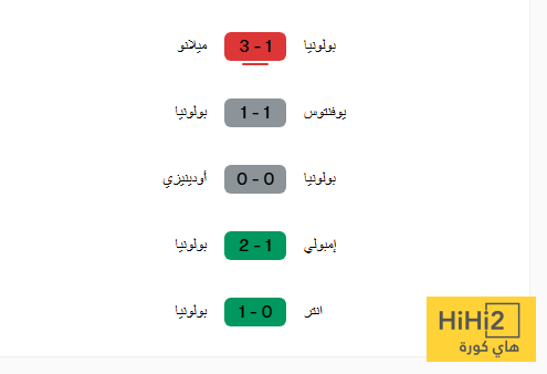 فيما يلي نتائج أخر 5 مباريات لبولونيا قبل مواجهة الميلان: