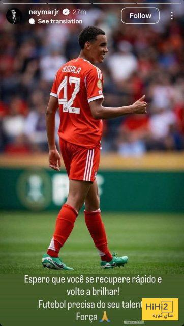 نيمار عبر في رسالته لموسيالا عن امنيته له بالتعافي سريعا للعودة مجددا للتألق في الملاعب لان كرة القدم بحاجة لموهبة مثل موسيالا .