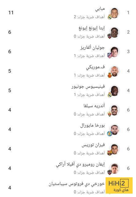 هاي كورة – يتصدر النجم الفرنسي كيليان مبابي ، مهاجم ريال مدريد ، قائمة هدافي الدوري الإسباني هذا الموسم ، حيث تمكن من تسجيل 11 هدفًا حتى الآن .