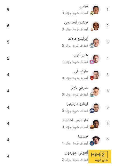 هاي كورة – يتصدر النجم الفرنسي كيليان مبابي مهاجم ريال مدريد قائمة هدافي بطولة دوري أبطال أوروبا هذا الموسم ، حيث سجل 9 أهداف حتى الآن ، وذلك بعد انتهاء الجولة الخامسة .
