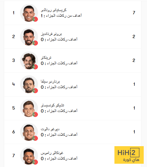 فيما يلي قائمة هدافي المنتخب البرتغالي في دوري الأمم الأوروبية قبل ملاقاة إسبانيا: