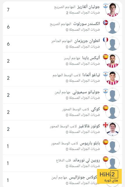 وجاءت قائمة هدافي أتلتيكو مدريد كالتالي :