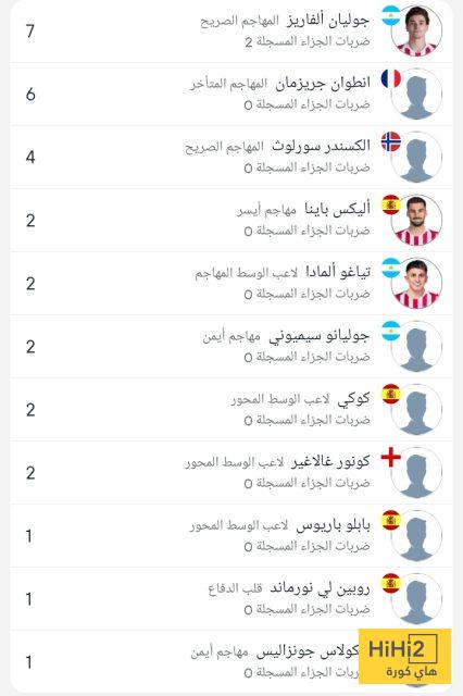وجاءت قائمة هدافي أتلتيكو مدريد كالتالي :