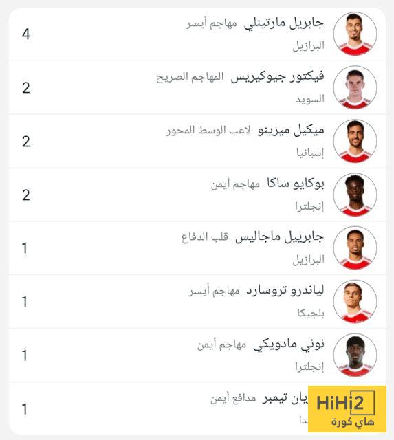 وجاءت قائمة هدافي أرسنال كالتالي :