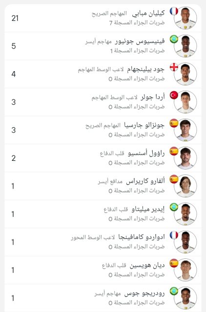 وجاءت قائمة هدافي ريال مدريد كالتالي :