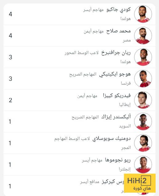 وجاءت قائمة هدافي ليفربول كالتالي :