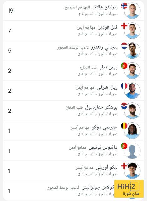 وجاءت قائمة هدافي السيتي كالتالي :