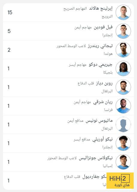 وجاءت قائمة هدافي السيتي كالتالي :